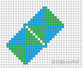 左上角/右下角块只有一个点染色,中间块除对角线外染色,其余块按三角形染色。